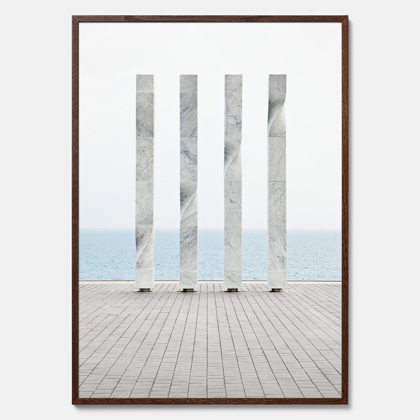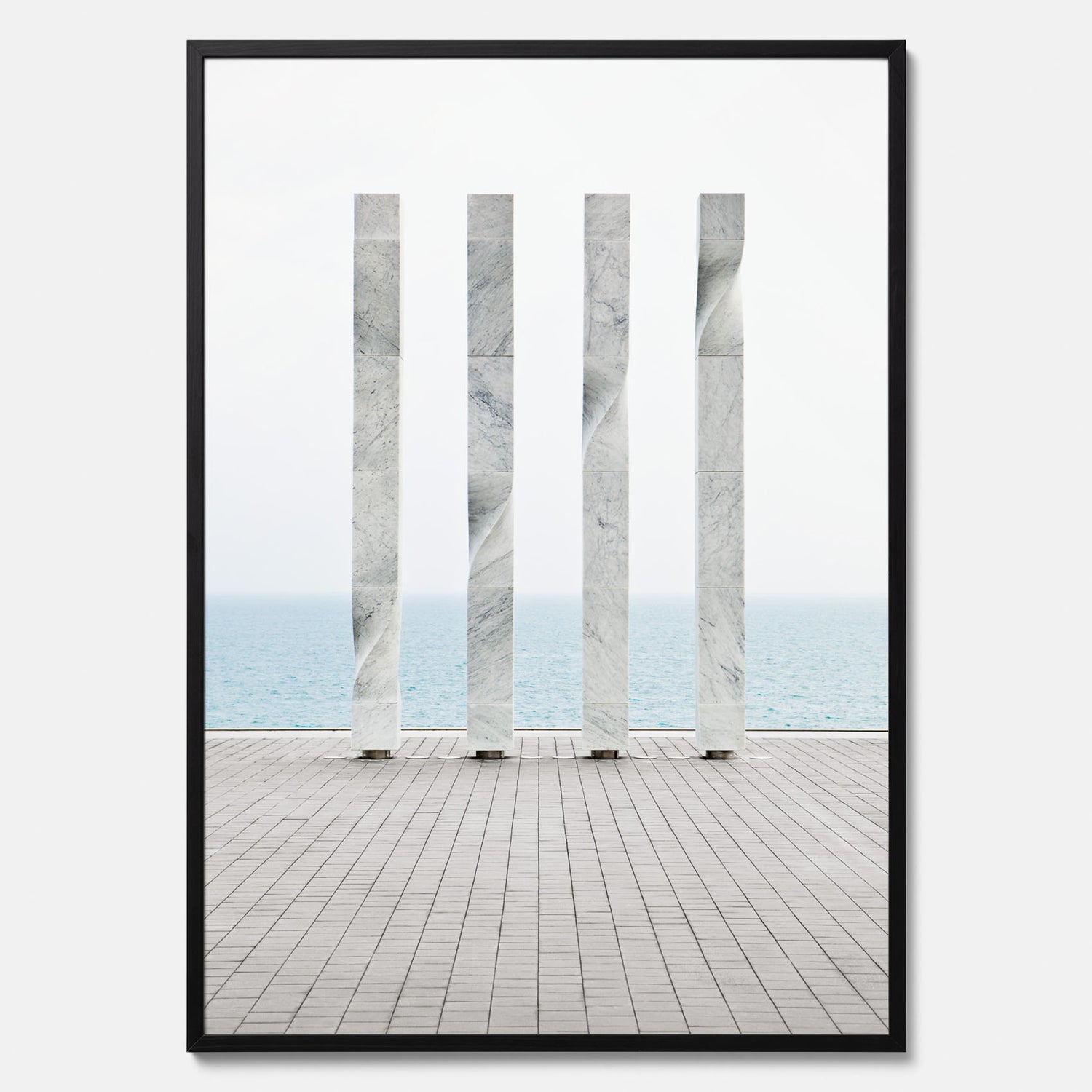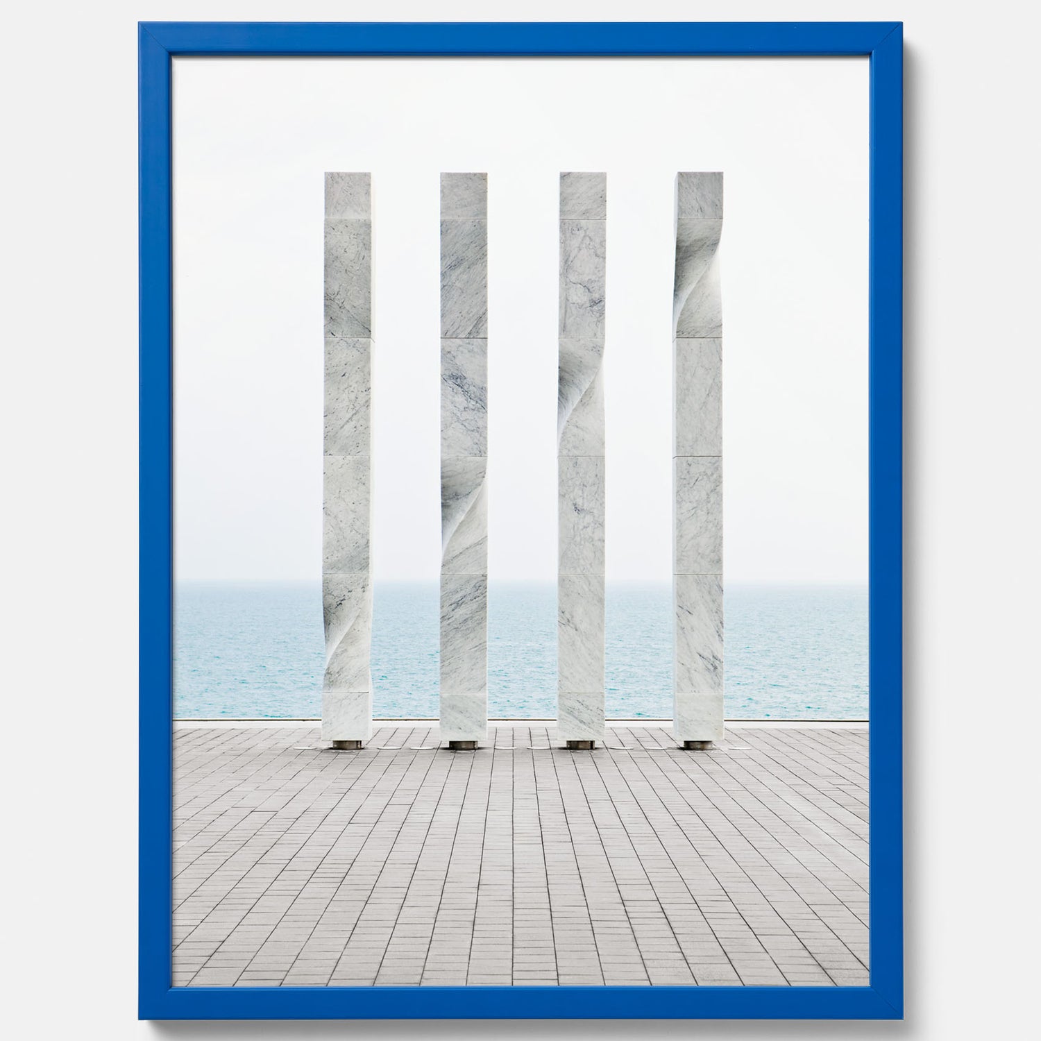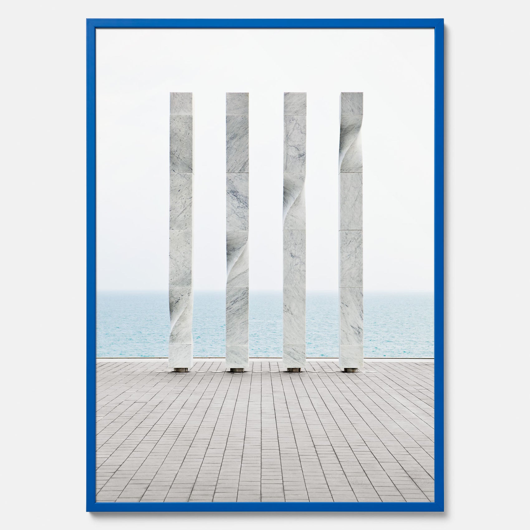 Postern visar Ricard Bofills monument "Les Quatre Barres" i Barcelona, som reser sig med det blåa Medelhavet i fjärran, taget av fotograf Mattias Hamrén.