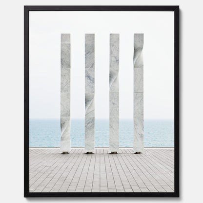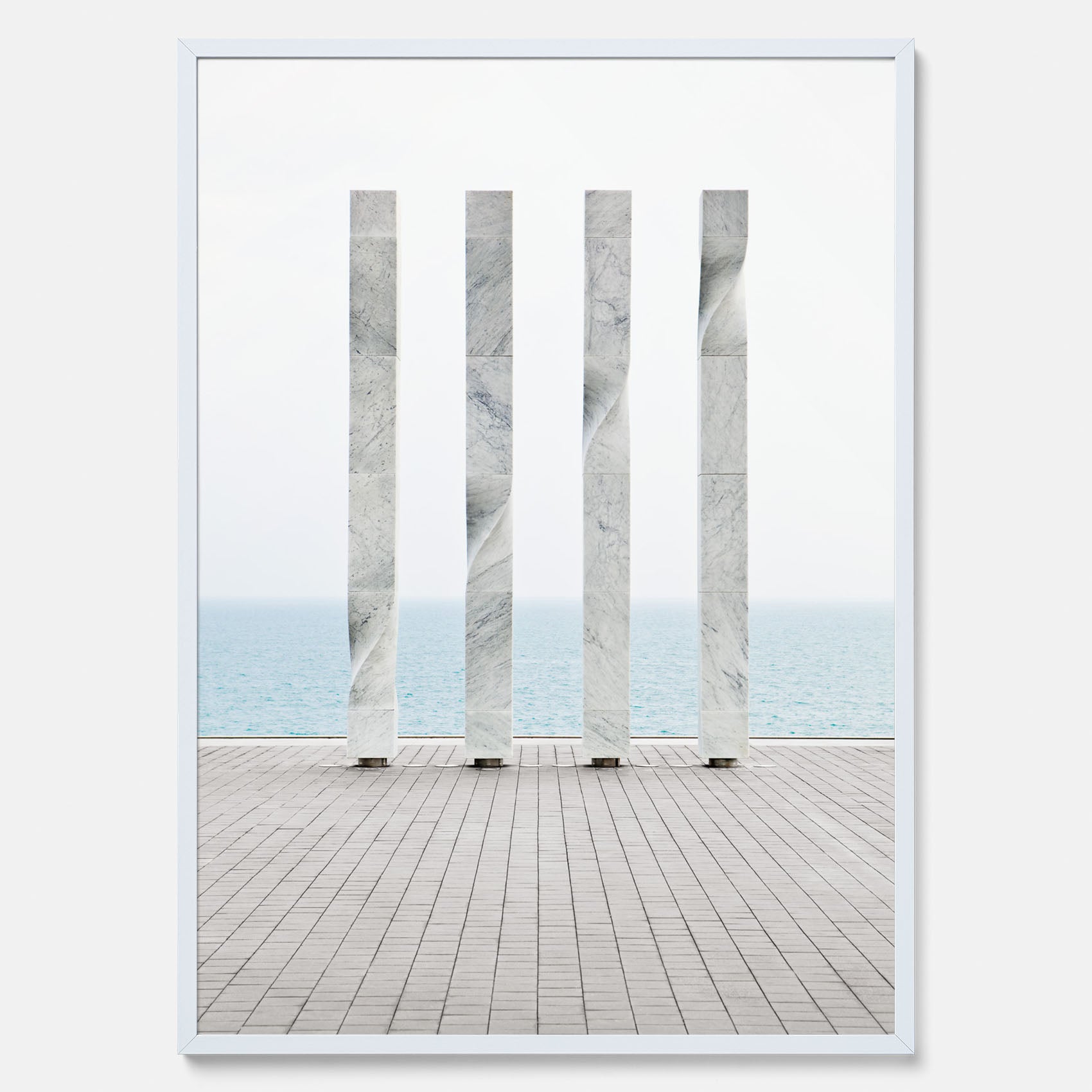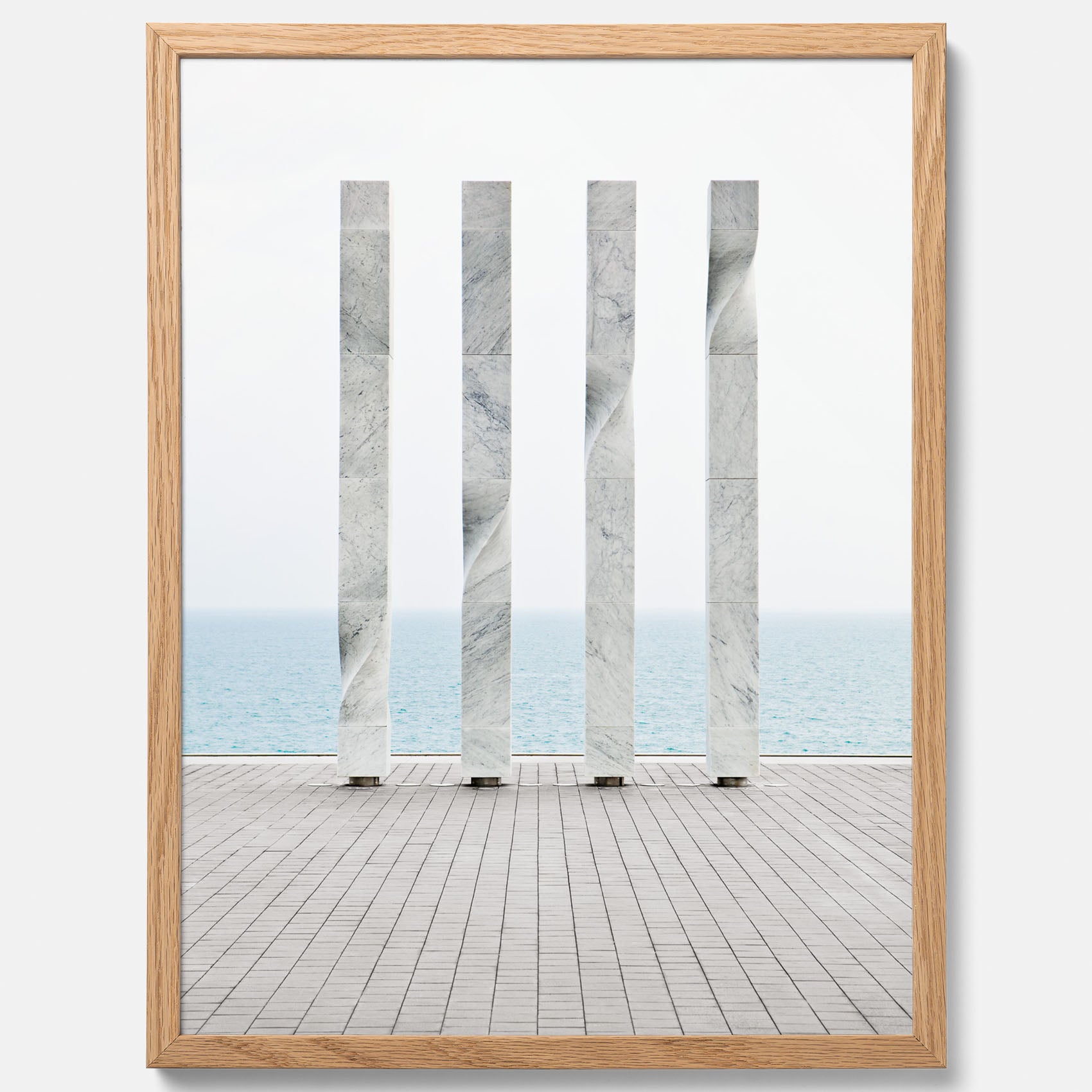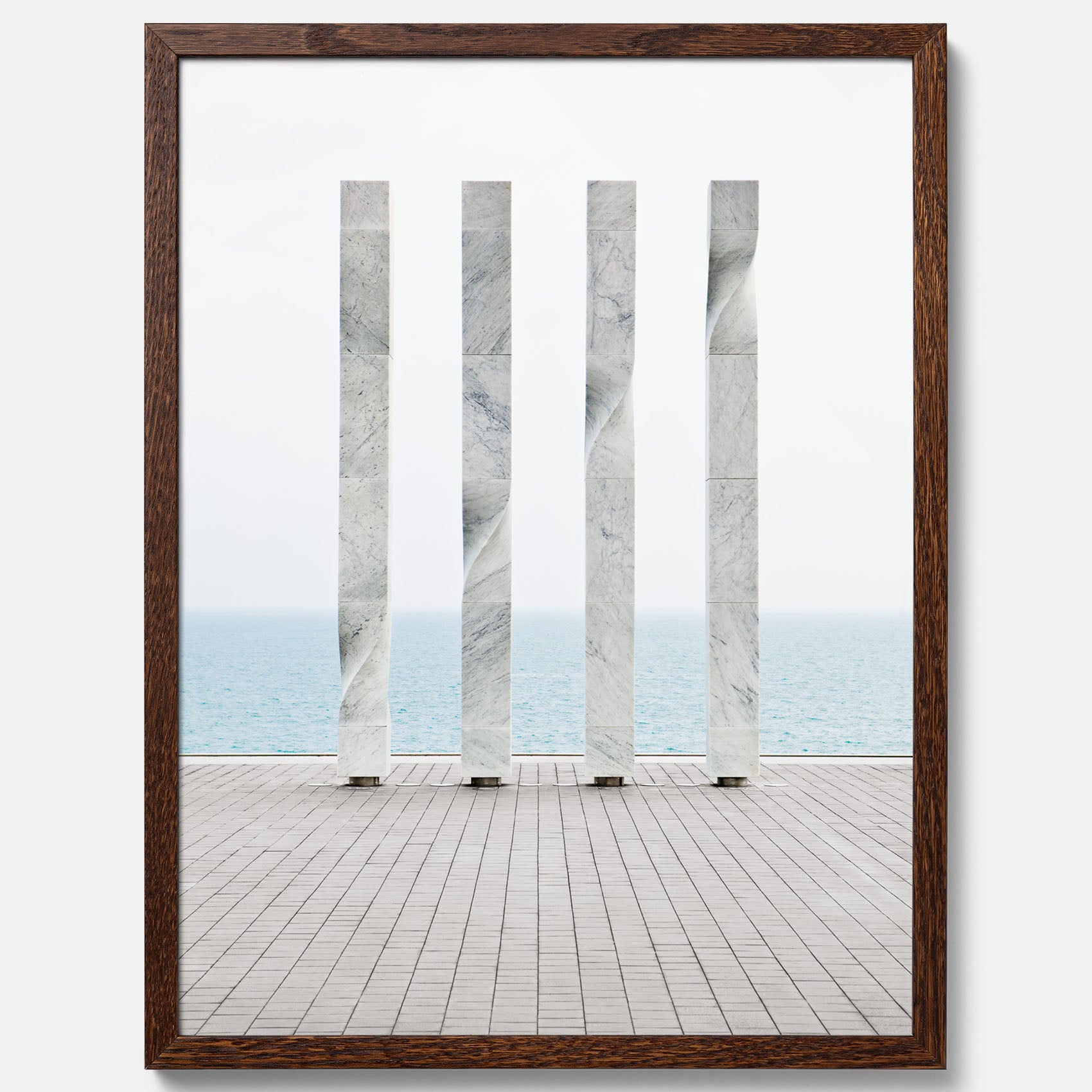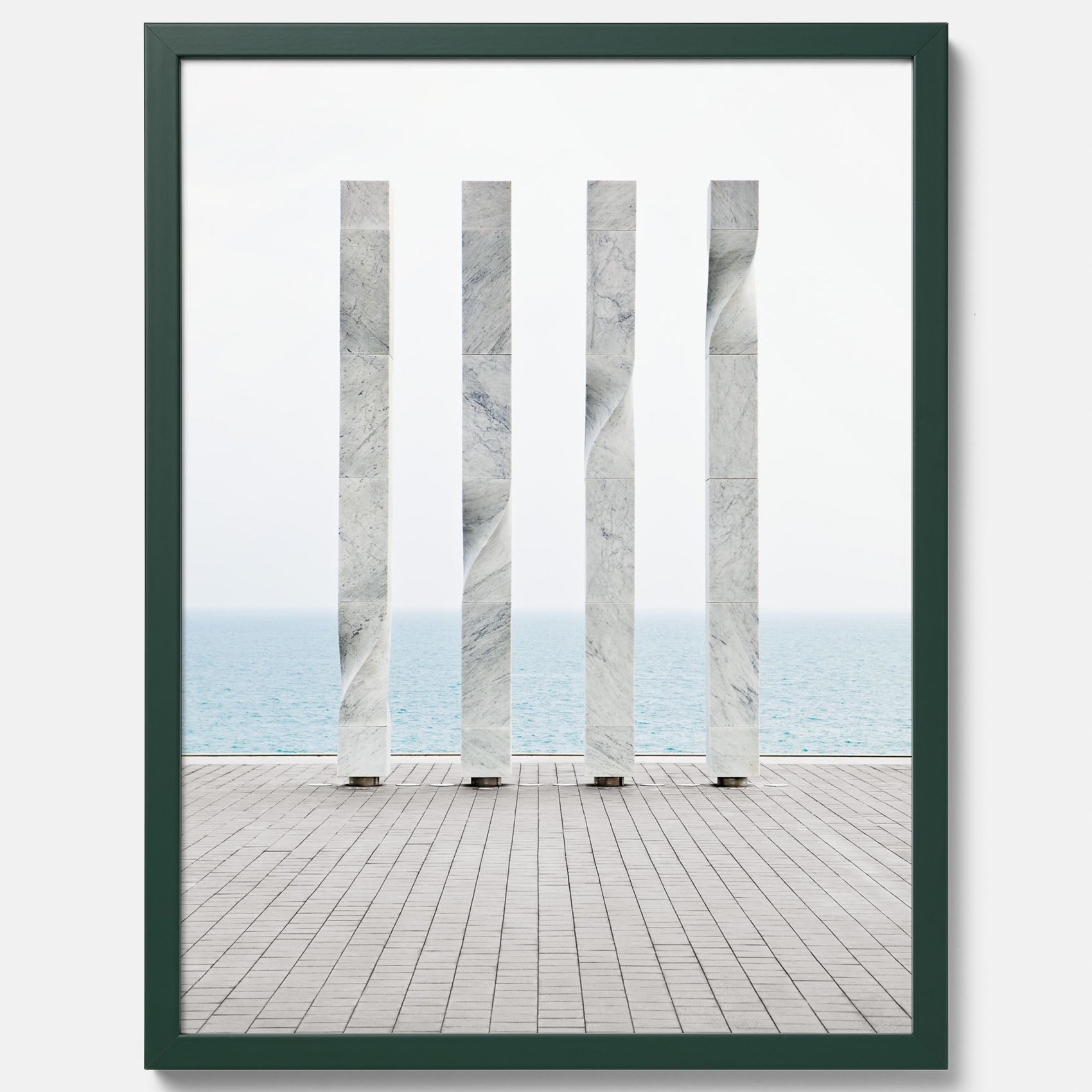 Postern visar Ricard Bofills monument "Les Quatre Barres" i Barcelona, som reser sig med det blåa Medelhavet i fjärran, taget av fotograf Mattias Hamrén.